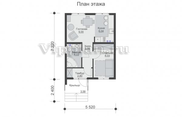 | Размеры дома: | 9.62м×5.52м |